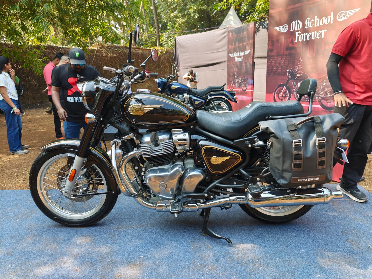 - Royal Enfield Bullet 650 with accessories displayed at Motoverse