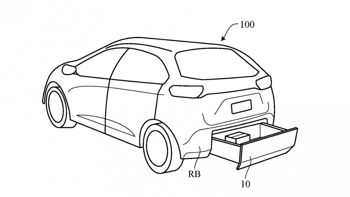 According to the design patents filed with the USPTO (United States Patent & Trademark Office), the storage compartment  appears to have a sliding drawer with a collapsible mechanism. In addition to this, the storage drawer is also likely to have a separate locking functions. This could be independent from the car’s central locking system and the boot and door locks. The design rear end design of the storage box means it is more likely to work only with an electric vehicles. This is due to its proximity with the exhaust system, which is likely to pose as a fire hazard.
