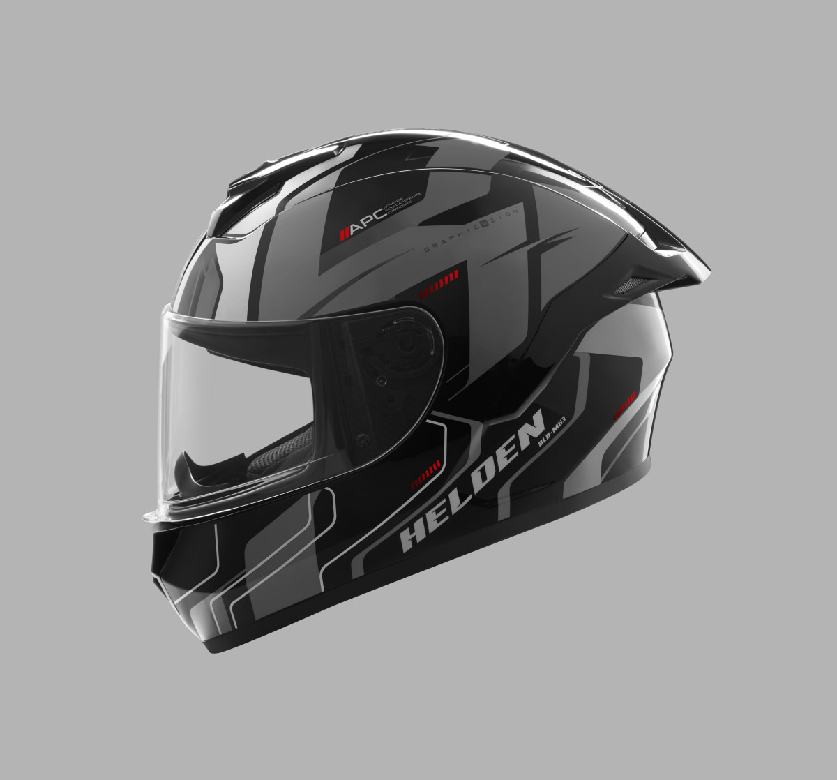 The Helden helmet is constructed using an Advanced Polycarbonate Composite Shell, offering a high strength-to-weight ratio. It complies with ISI (India), DOT (USA), and ECE (Europe) certifications, ensuring global-grade protection.